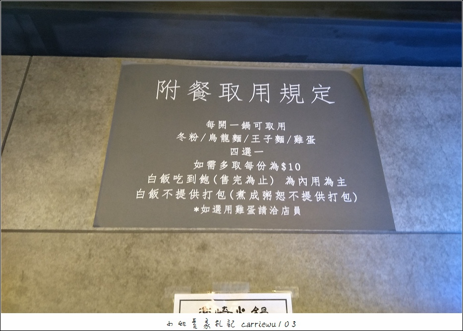 附餐麵食,取用規定如上,只能拿一次的意思,第二份$10。