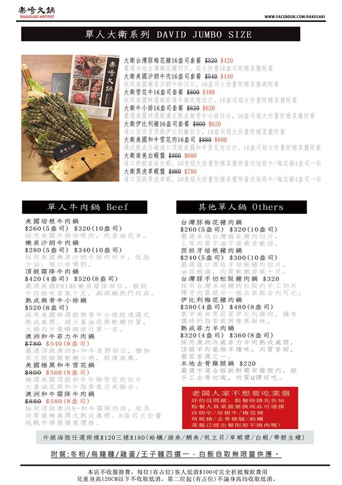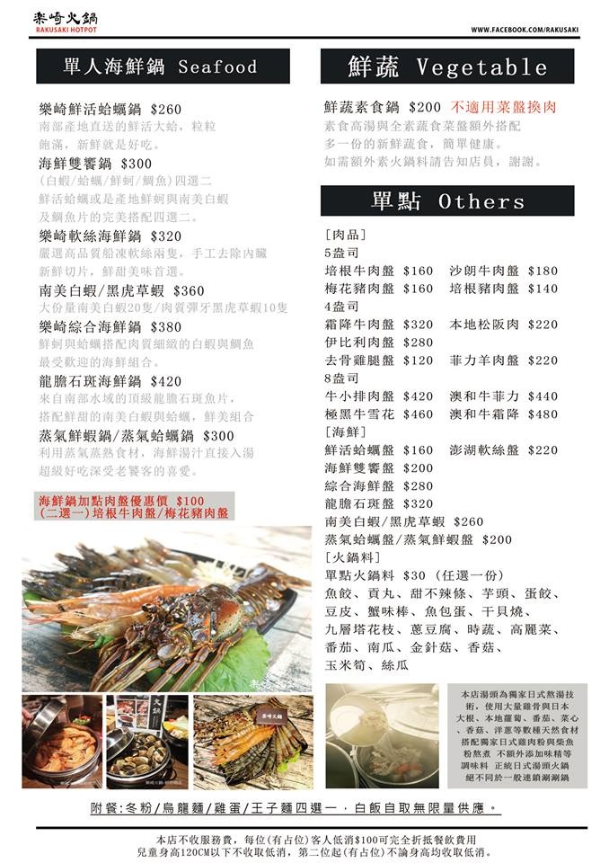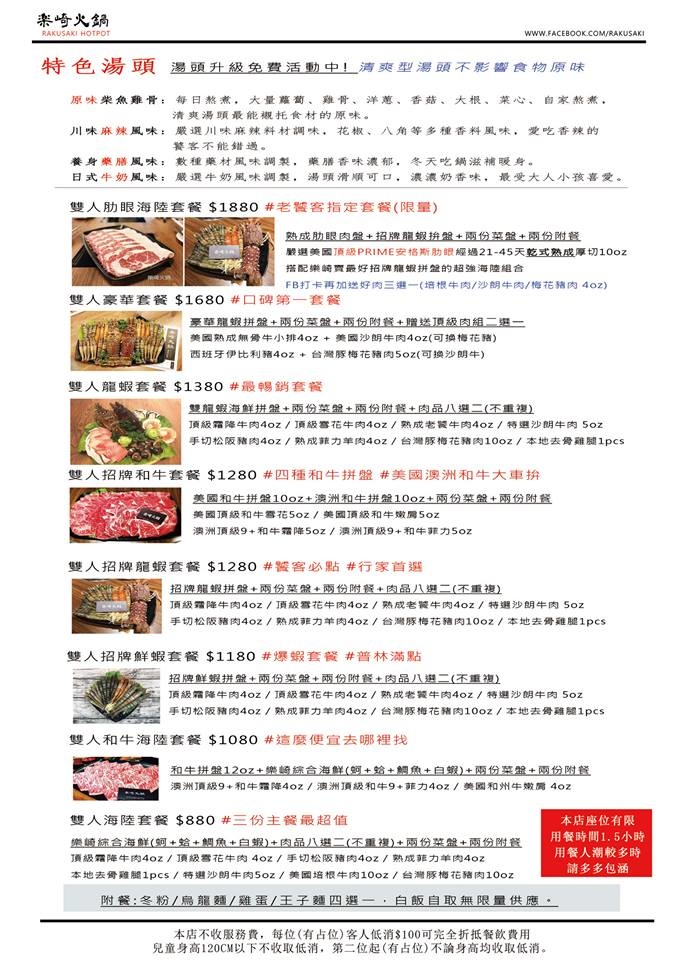 ▲菜 單 如 上▲ 這是官網抓下來的如有變動還是要依樂崎火鍋為主喔。