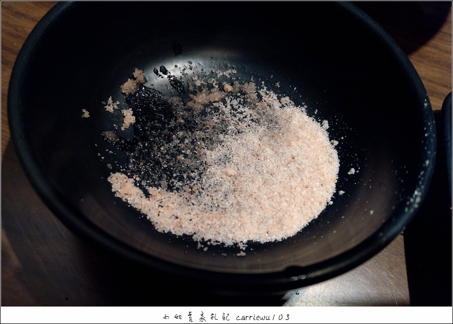吃肉就是要沾玫瑰鹽,比沾醬還更好吃耶。