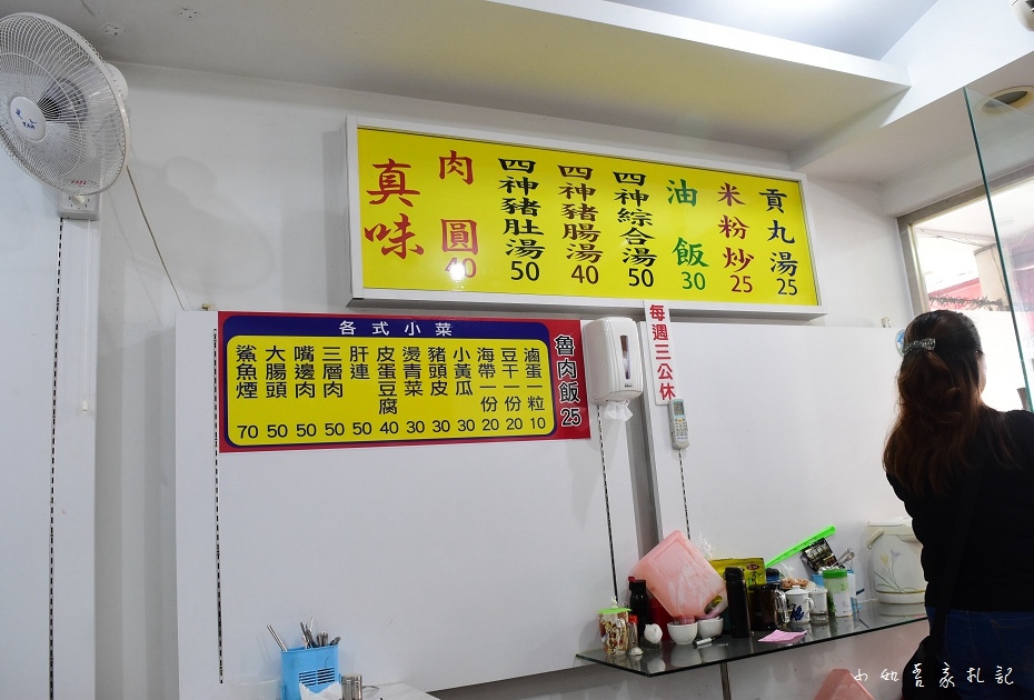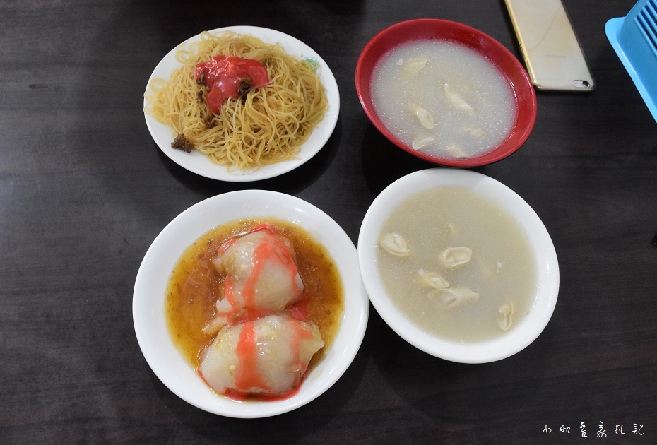 還有四神湯、炒米粉、燙青菜和小菜,簡單的菜色解決我們的一餐。