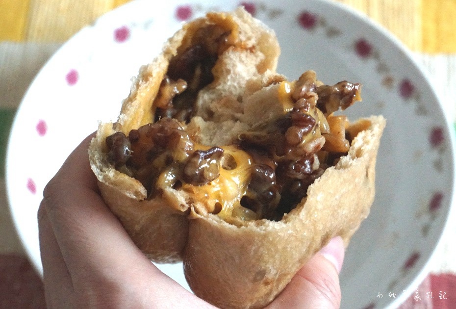 內餡有核桃、起司,核桃跟起司的組合好搭,口感很濃郁;