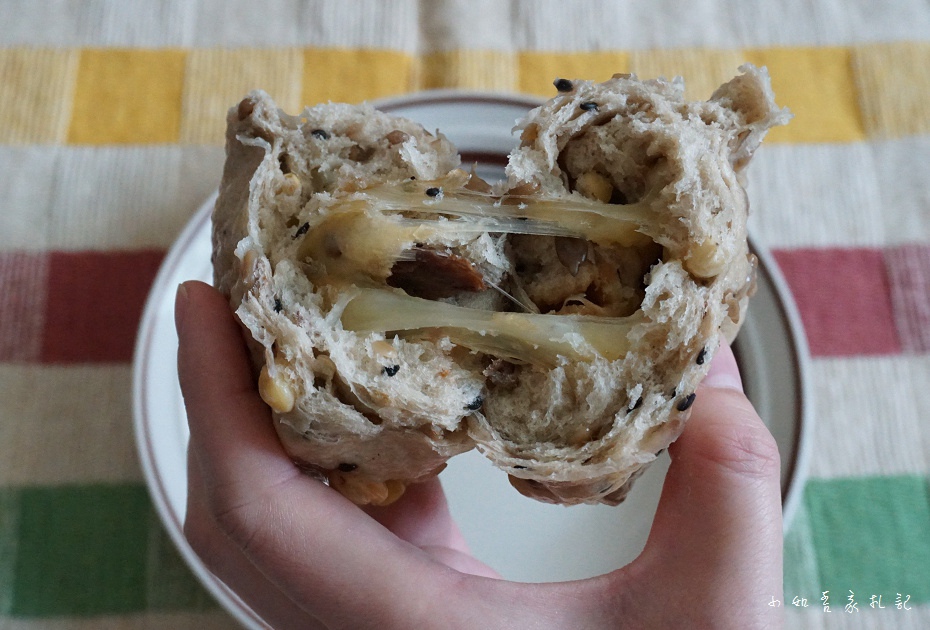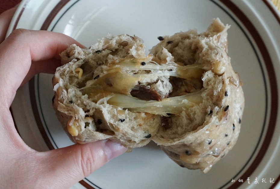 沒想到撥開還會拉絲,這款是雜糧加起司,