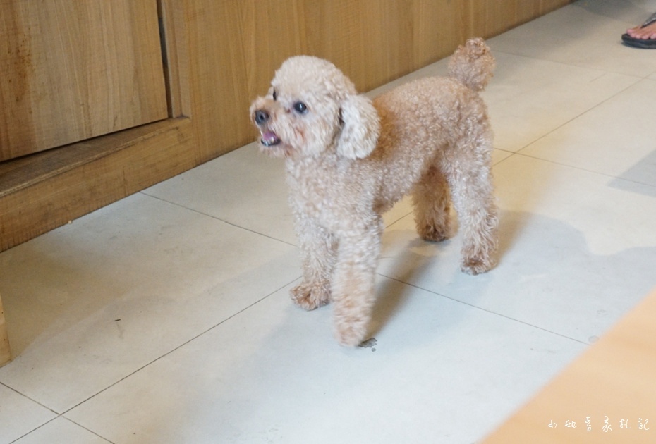 此時外帶的婦人點餐,帶了一隻紅貴賓進來XD