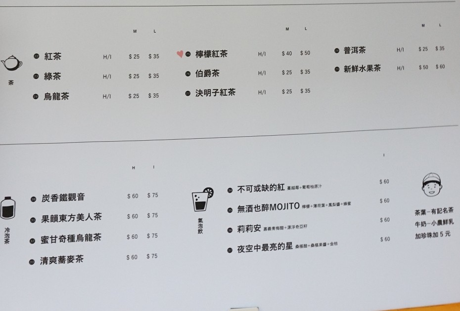 ▲Menu▲旁邊有寫茶葉是用有記名茶,
