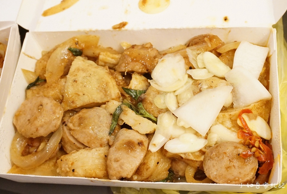 「香腸炒米腸,」我們額外有添加貢丸、甜不辣,