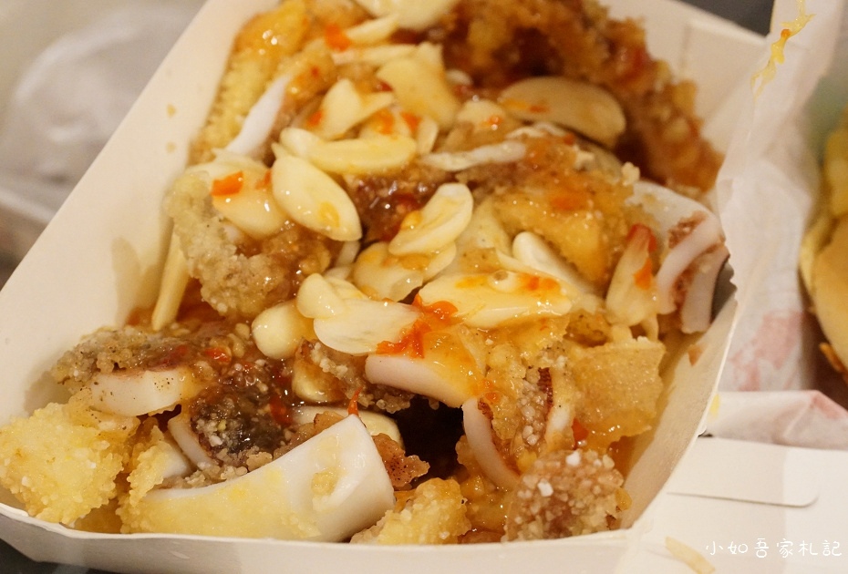 但加蒜片會比較好吃喔,熱熱的吃炸魷魚最好。