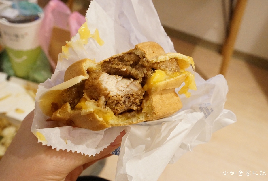就是車輪餅裡面包鹽酥雞,吃一個就相當有飽足感,