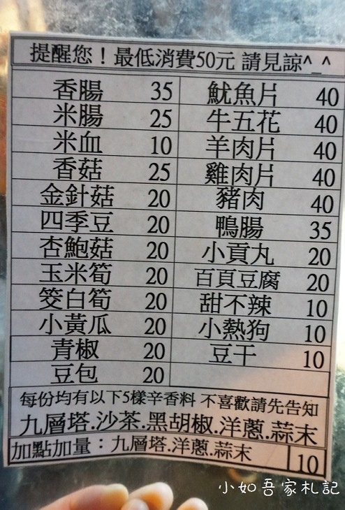 加入拌炒的料價格,下面有說到每份都會添加五樣香料,