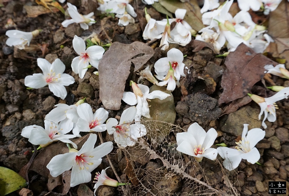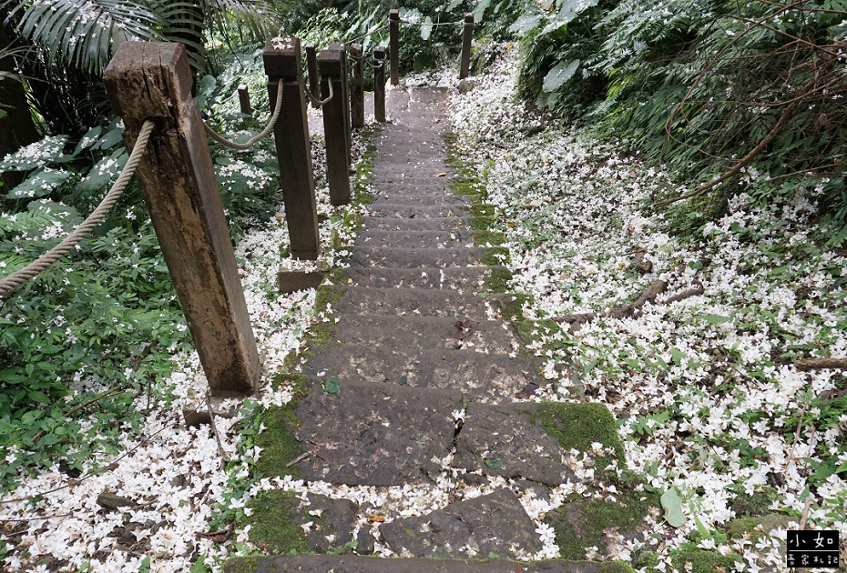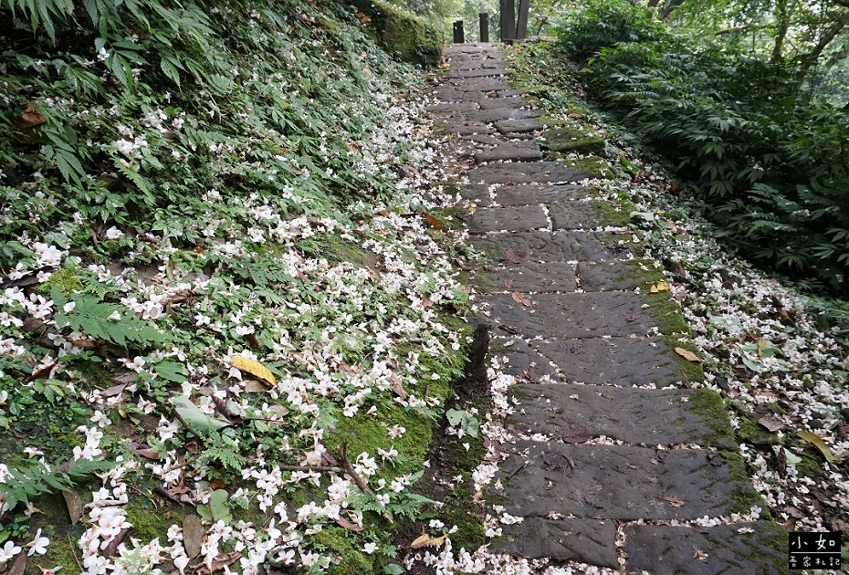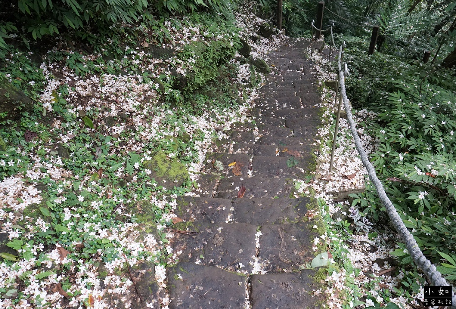 步道上白白的全都是桐花,而且某處的步道上,桐花滿地多到有點驚訝,