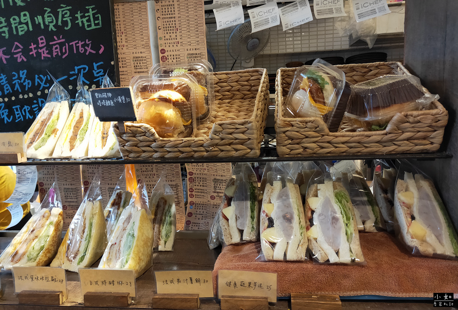 然後再等的時候,看到櫃檯前方有一些做好的各式三明治,