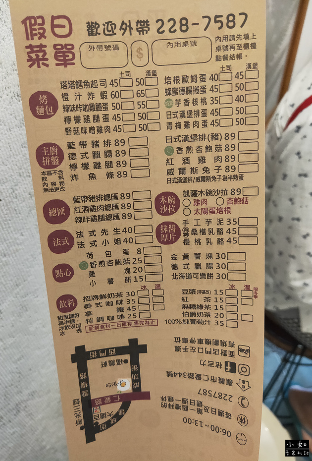 菜單還分平日、假日兩個版本,別拿錯喔~~