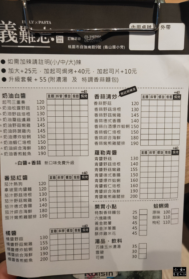 『義難忘』,感覺是個什麼八點檔的店名XD,就是pasta吃義大利麵~久違的義大利麵晚餐,