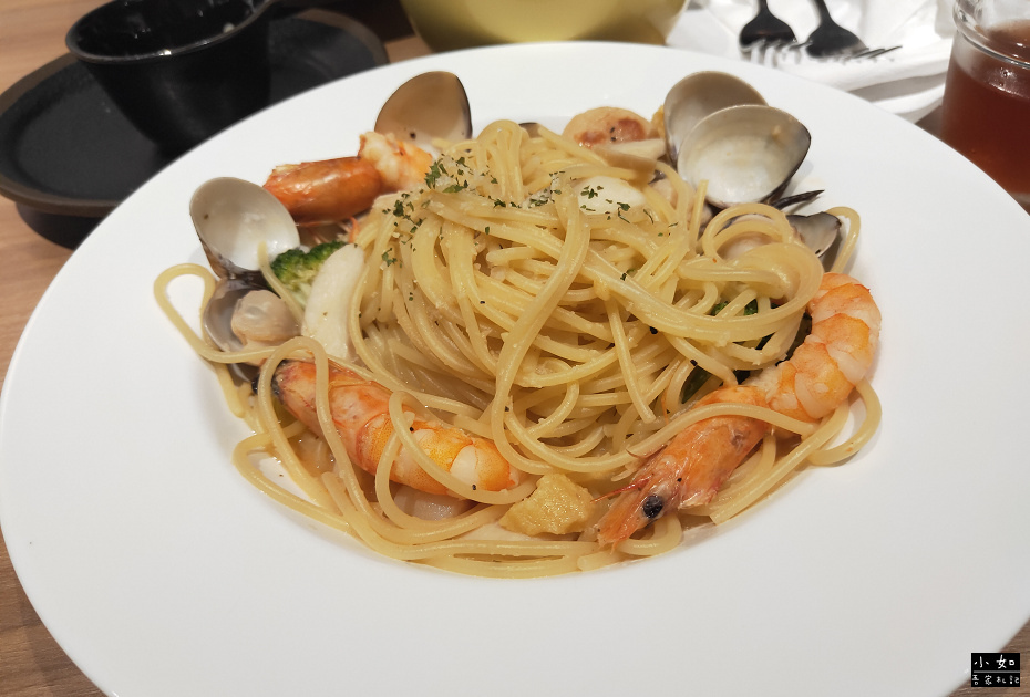 吃的到蛤蜊、蝦子、花枝海鮮,鮮味也讓義大利麵更為濃郁~