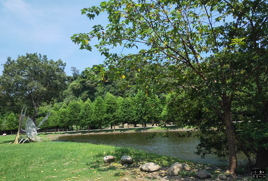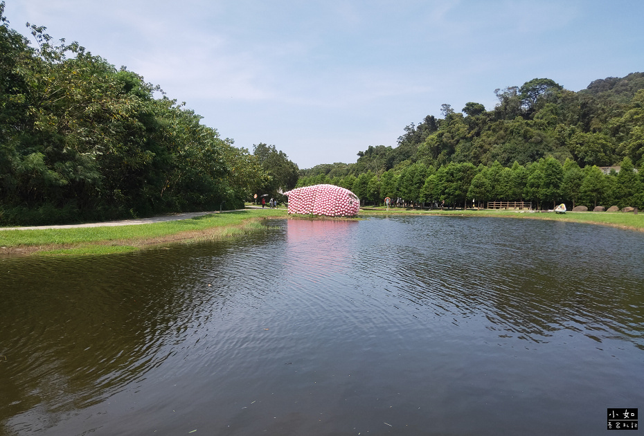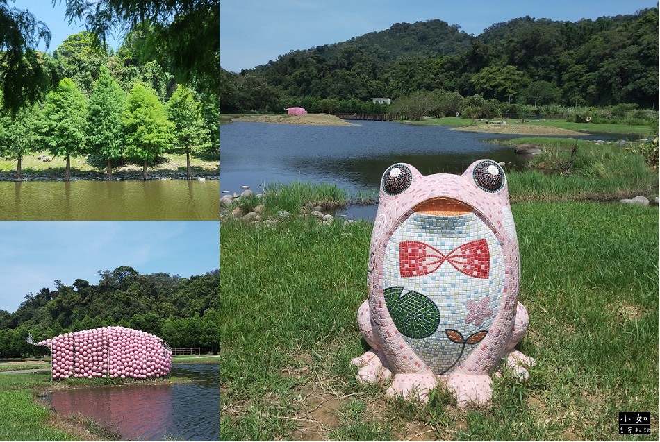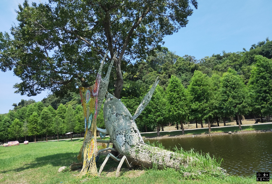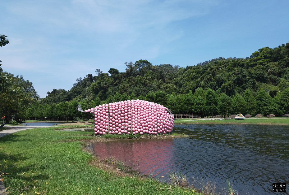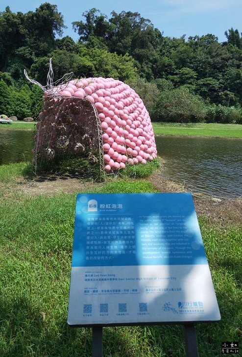 『月眉人工濕地生態公園』好好走,周圍有一排的落羽松,季節到了,相信會是很唯美的景色,池裡還有粉色福壽螺的造型,