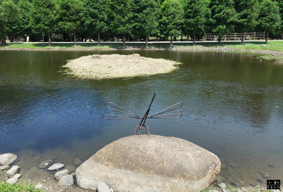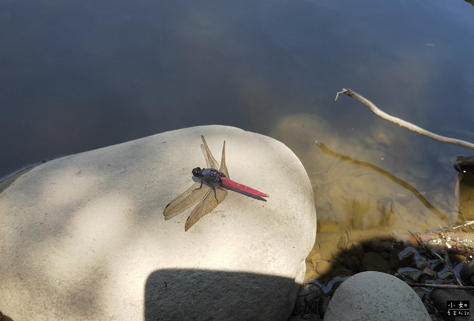 石頭邊有一隻造景蜻蜓,跟生態濕地邊相對呼應。