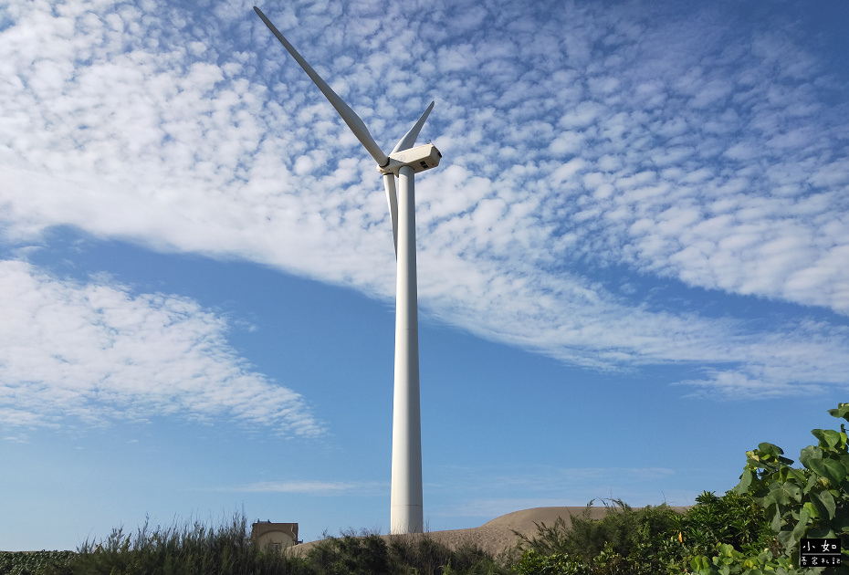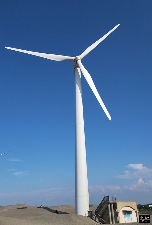 眼前是壯碩的濱海發電風車,超級高大轉動。