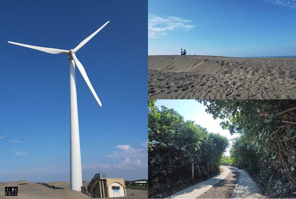 沿海的草漯沙丘,可遠觀成排發電風車佇立景色。
